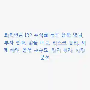퇴직연금 IRP 수익률 높은 운용 방법, 투자 전략, 상품 비교, 리스크 관리, 세제 혜택, 운용 수수료, 장기 투자, 시장 분석